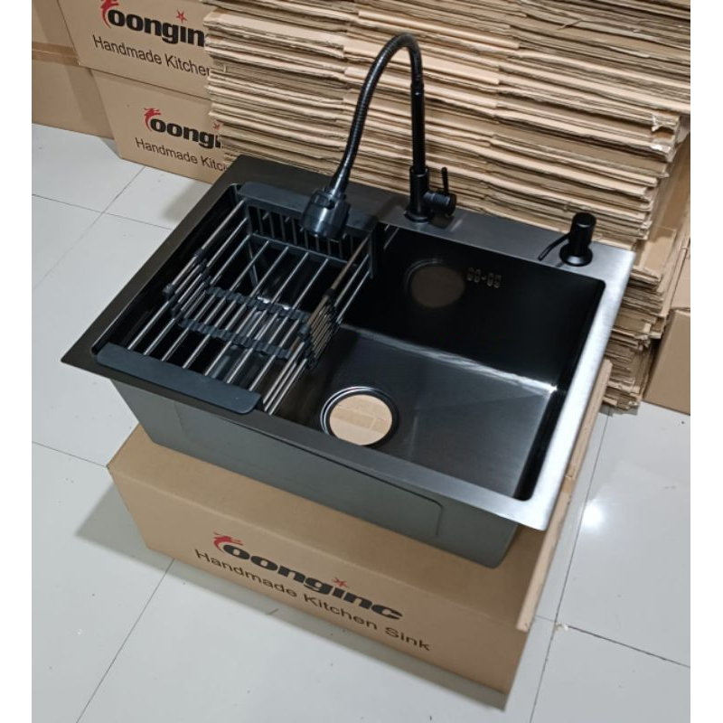 Paket komplit kitchen sink 5243 black/ paket kran flexible / paket komplit kitchen sink hitam