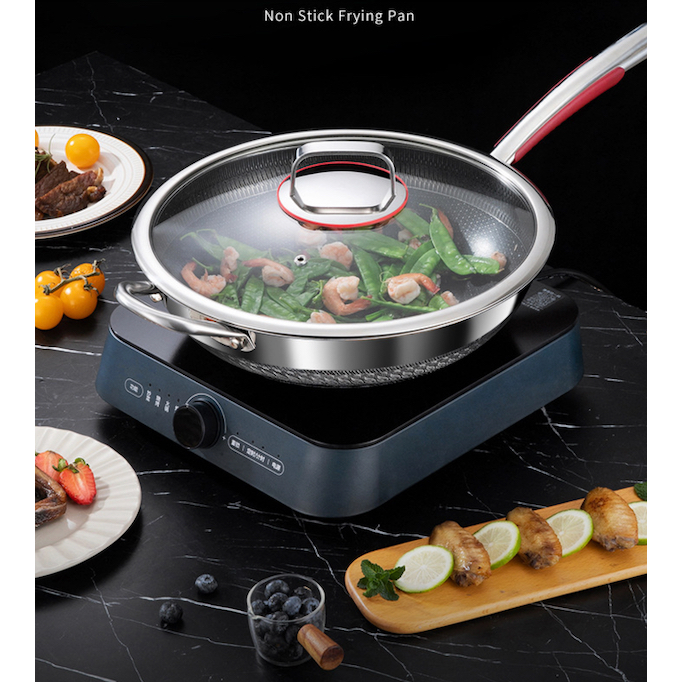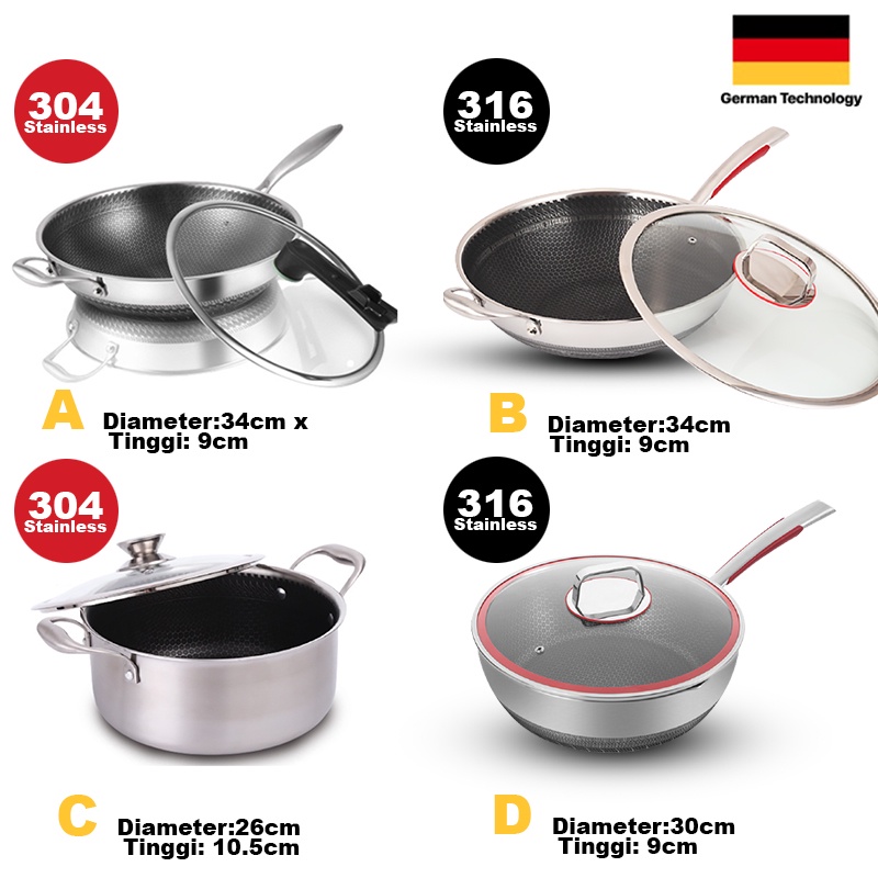 Wajan Penggorengan Kuali Wok Pan Stainless 304 316 Premium Anti Lengket