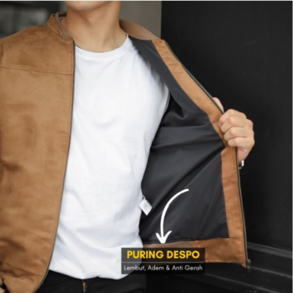 LIBRA Jaket Bomber Kulit Suede Pria Terbaru 2024 Murah Keren Nyaman Adem Dipakai Original Brown