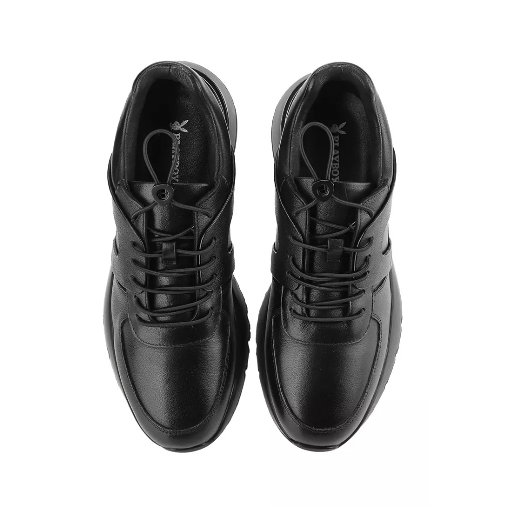 PL15 SEPATU SNEAKER PLAYBOY PRIA ORIGINAL SNEAKERS KULIT ALL FULL BLACK HITAM POLOS