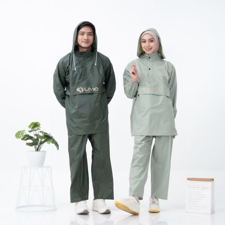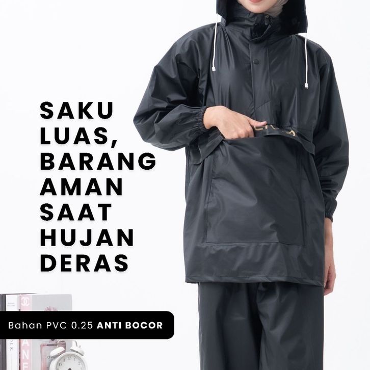 LIVIO Jas Hujan Model Kangguru Setelan Baju + Celana Jumbo Anti Air Mantel Pria Wanita Dewasa