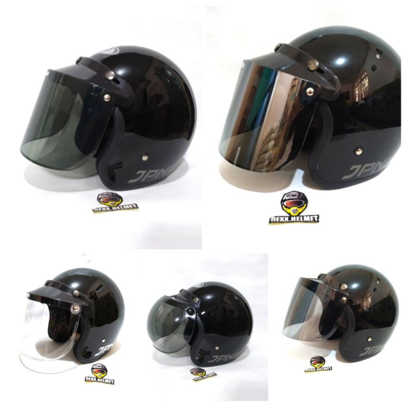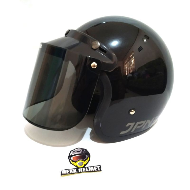 Helm Bogo JPN Black Hitam Glossy Original Retro + Kaca Datar
