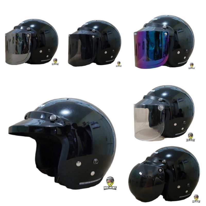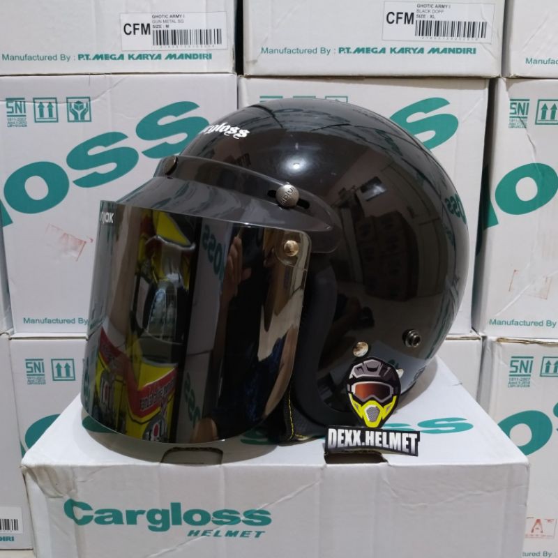 Helm Cargloss Retro Original Hitam Black Glossy Metalic + Kaca Datar