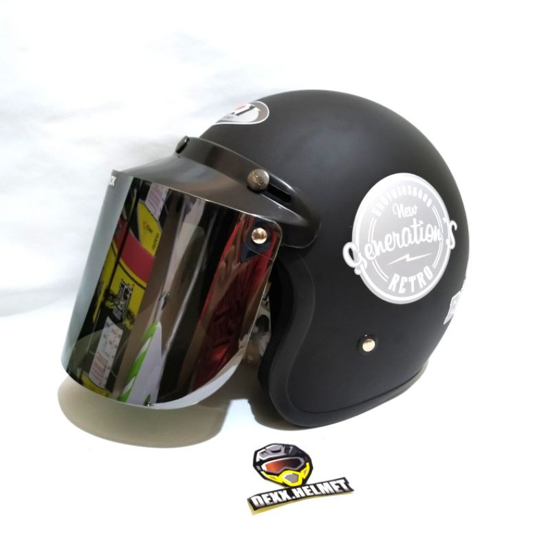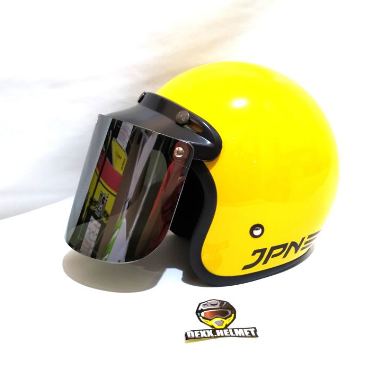 Paket Helm Bogo JPN Original Kaca Datar Injak Hitam Silver Pelangi Bening