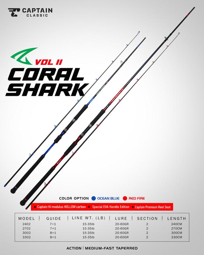 Joran Pancing CAPTAIN CORAL SHARK Gen 2 240cm - 330cm (Carbon) Jigging Murah - Toms Fishing