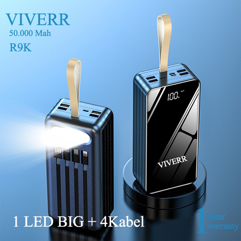 Powerbank VIVERR R9K Kapasitas 50.000 mAh With 4 Kabel charging original 100% garansi 1tahun.