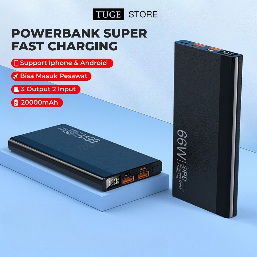 TUGE 66W Powerbank Fast Charging] 20000mAh LED Display 2 Output Port USB & Type C Flight Friendly