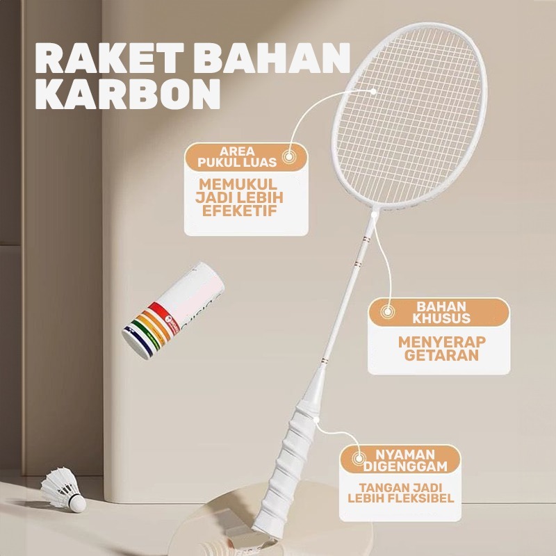 BBAK Raket Badminton Raket Bulu Tangkis Isi 2 Bahan FULL CARBON Berkualitas Olahraga Badminton Original Badminton Racket Free Tas Kok Bulutangkis
