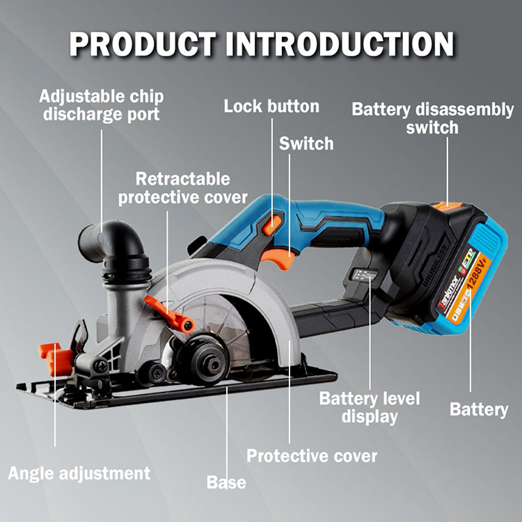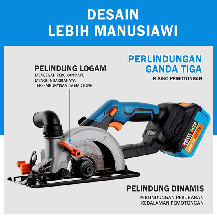 Tankmor TMR-802 5" Gergaji Lingkar Tanpa Kabel, Tanpa Sikat, 2 Baterai, Pemotong Marmer, Kayu, Plastik, Ubin Batu