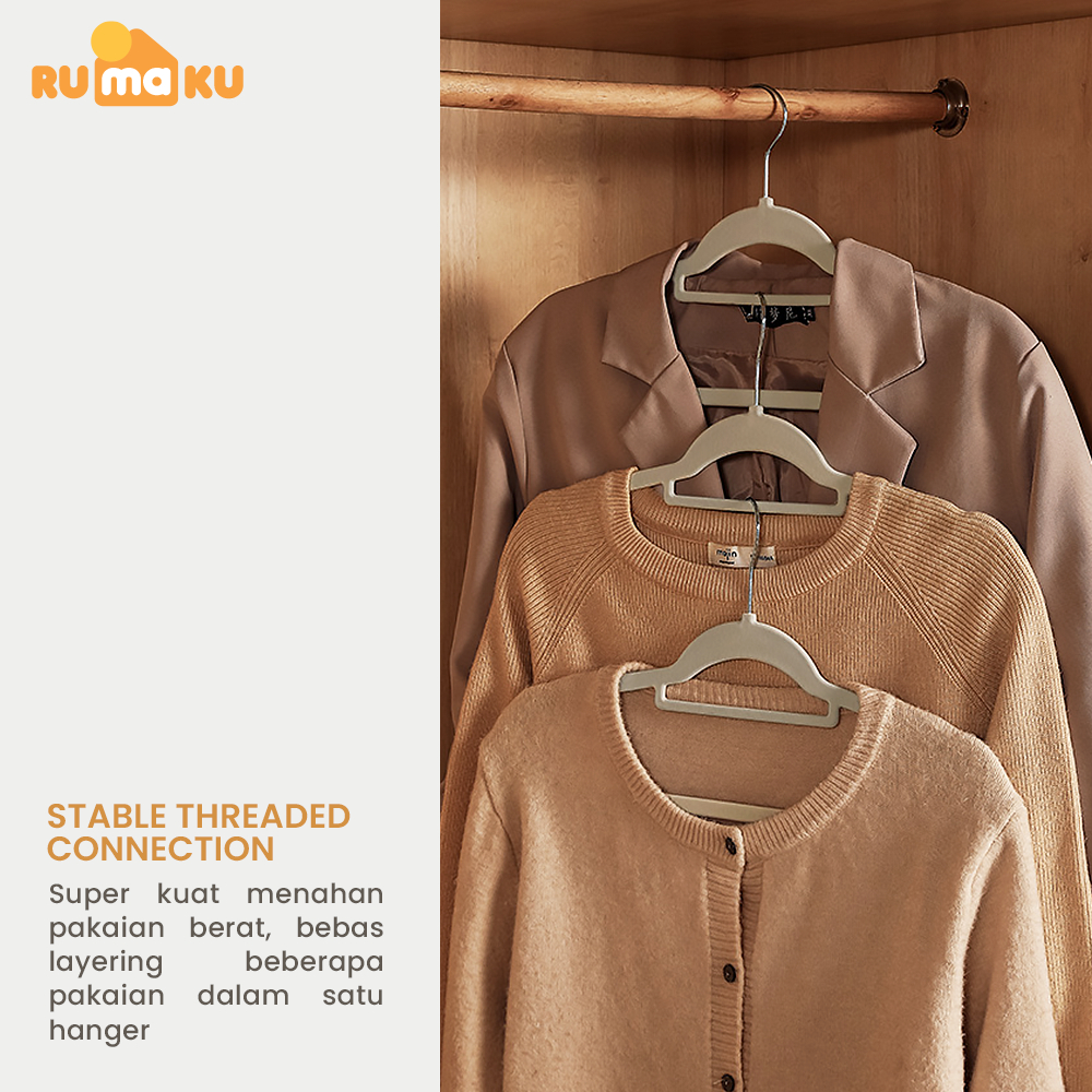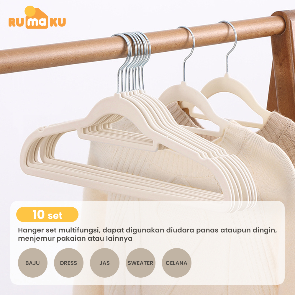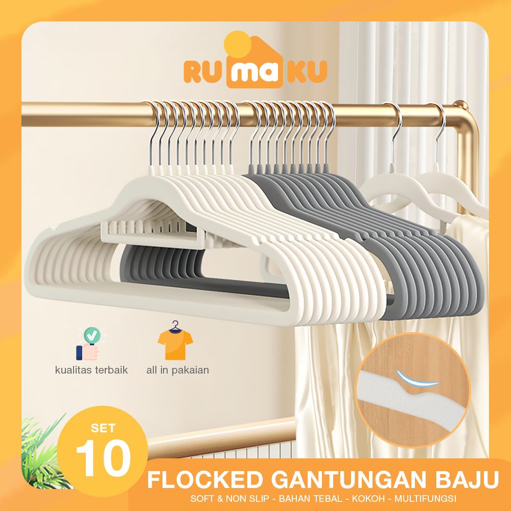 RMK 1 Set Gantungan Baju Bludru Anti Slip Hanger Pakaian Dewasa Tebal Berkualitas Isi 10 Pcs
