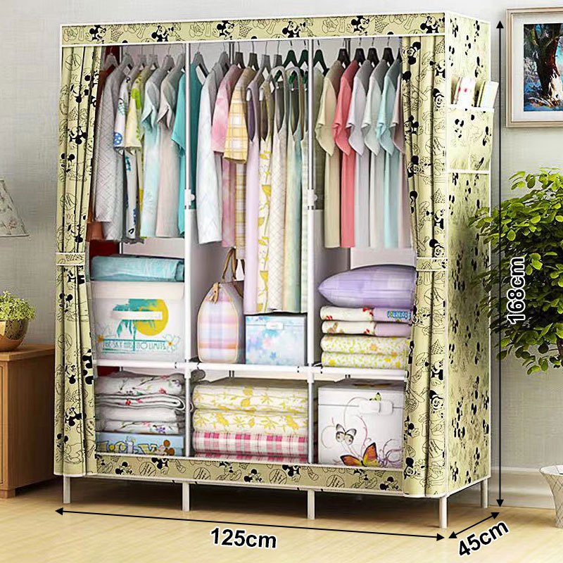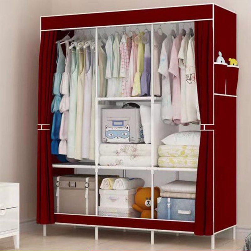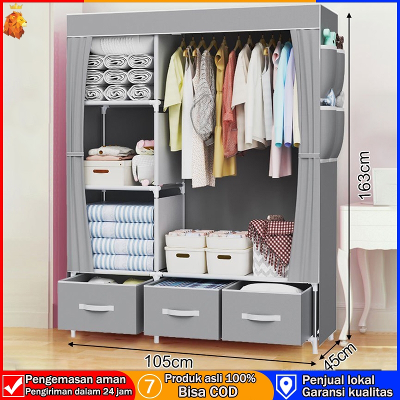 Lemari Pakaian Kain Portable Jumbo Dust Cover Anti Debu-3 Laci Multifungsi Kasar & Tahan Lama