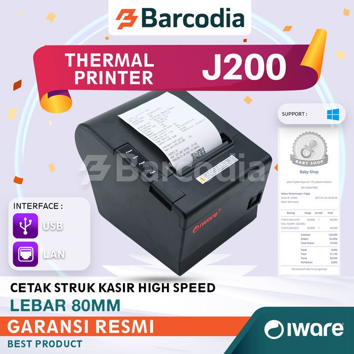 Baria Printer Thermal Iware 80mm J200 Series Usb Bluetooth Lan Auto Cutter