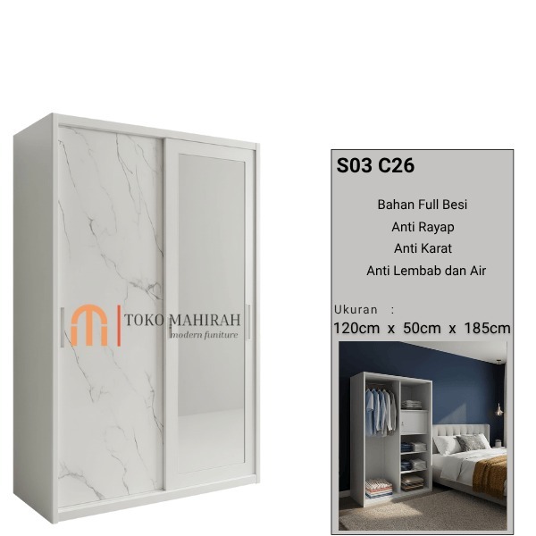 Lemari Besi Importa 100% Plat Besi Sliding 2 Pintu Gratis Ongkir
