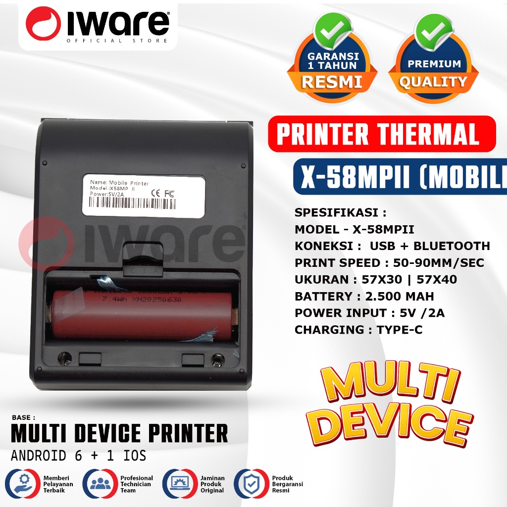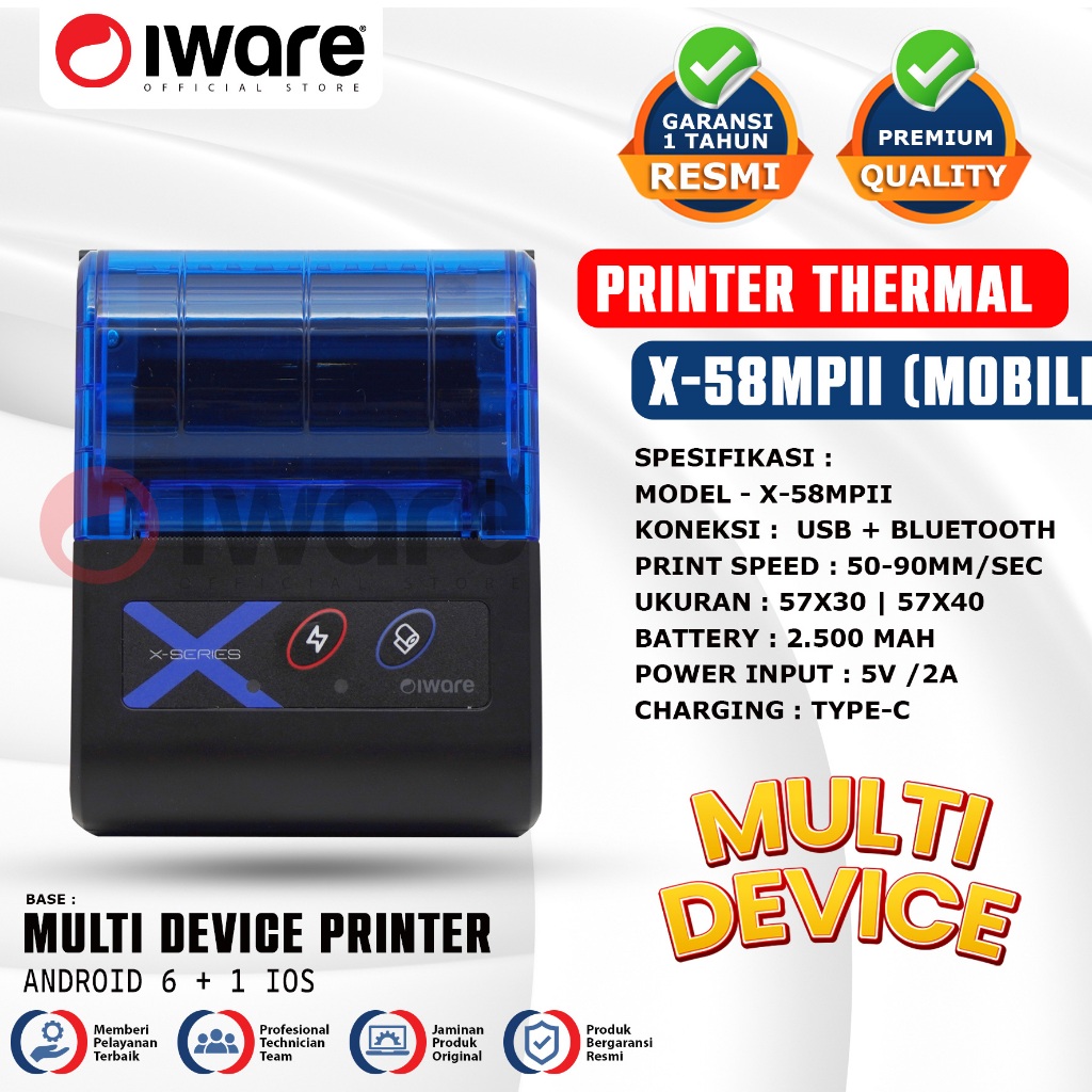 Iware Mobile Printer Thermal Struk Kasir PPOB RPP02N Multidevice X-Series X-58MPII 58mm Usb bluetooth Type-C 6 Android +