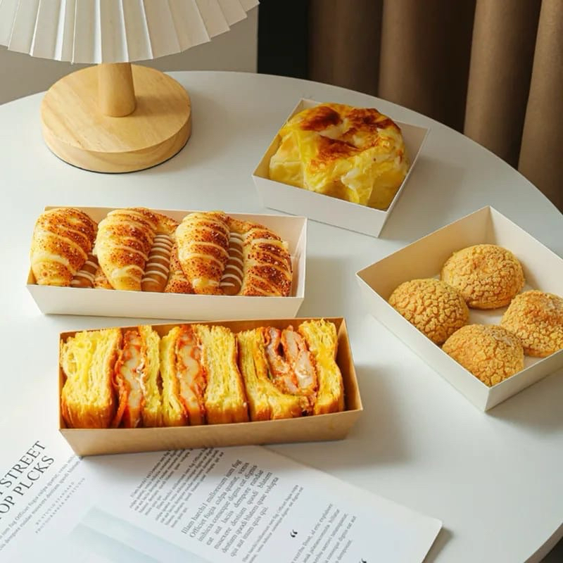 MDLBake 10 PCS PREMIUM BOX Cup Roti Oven Kotak / Tempat Roti Bisa Masuk Oven / Cup Sandwich PANJANG KOTAK COKLAT PUTIH