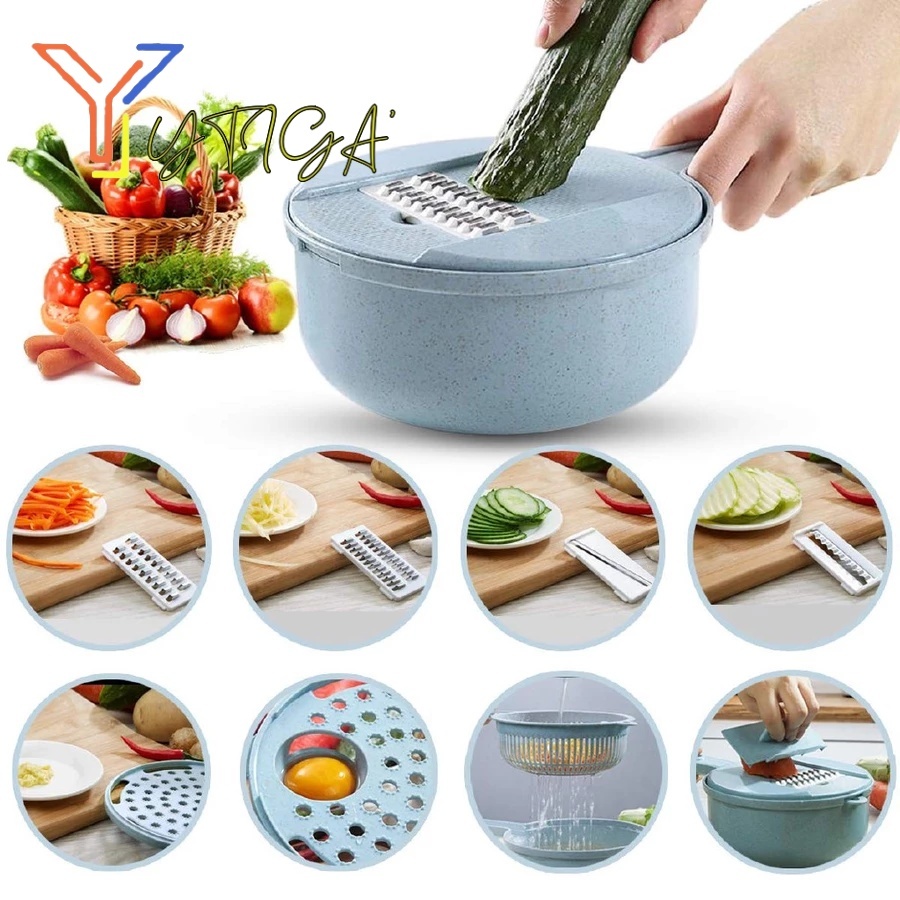 Parutan Serbanguna Stainless Potong Iris Sayur Buah Premium Vegetable Cutter 6 pisau + wadah