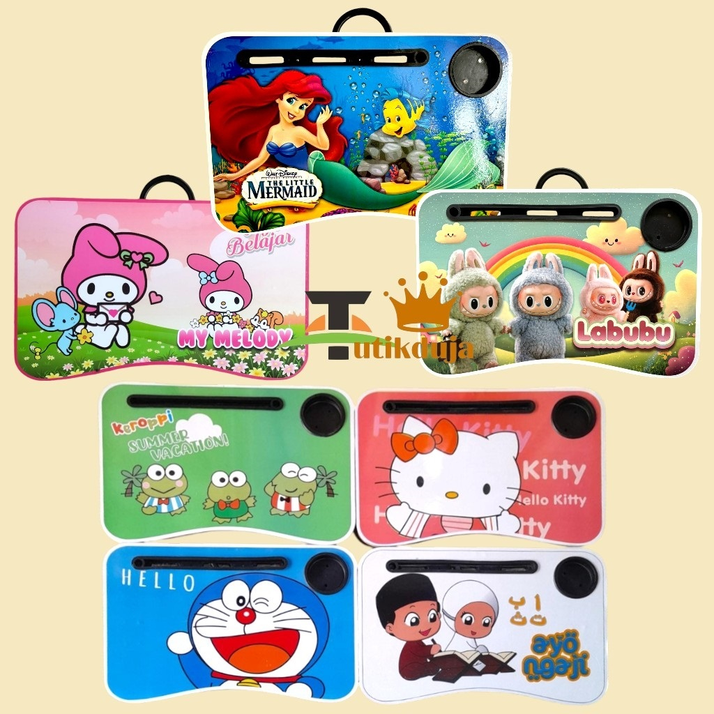 MEJA BELAJAR LIPAT KARAKTER LAPTOP DAN TEMPAT GELAS
