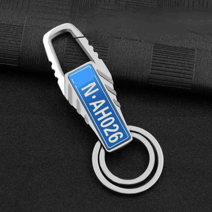 【FreeCustom】【2 lilitan-Biru】Gantungan Kunci Motor Mobil Gudang Rumah Anti-Hilang Ukiran Laser Pemberian