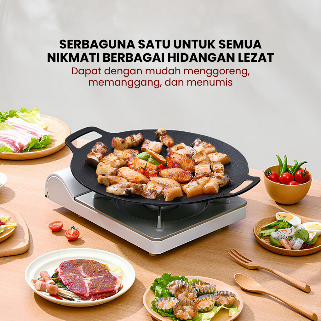 FUNNYCOOK Alat Panggang BBQ Grill Pan Korean 36CM 38CM Wajan Bulat Anti Lengket Serbaguna