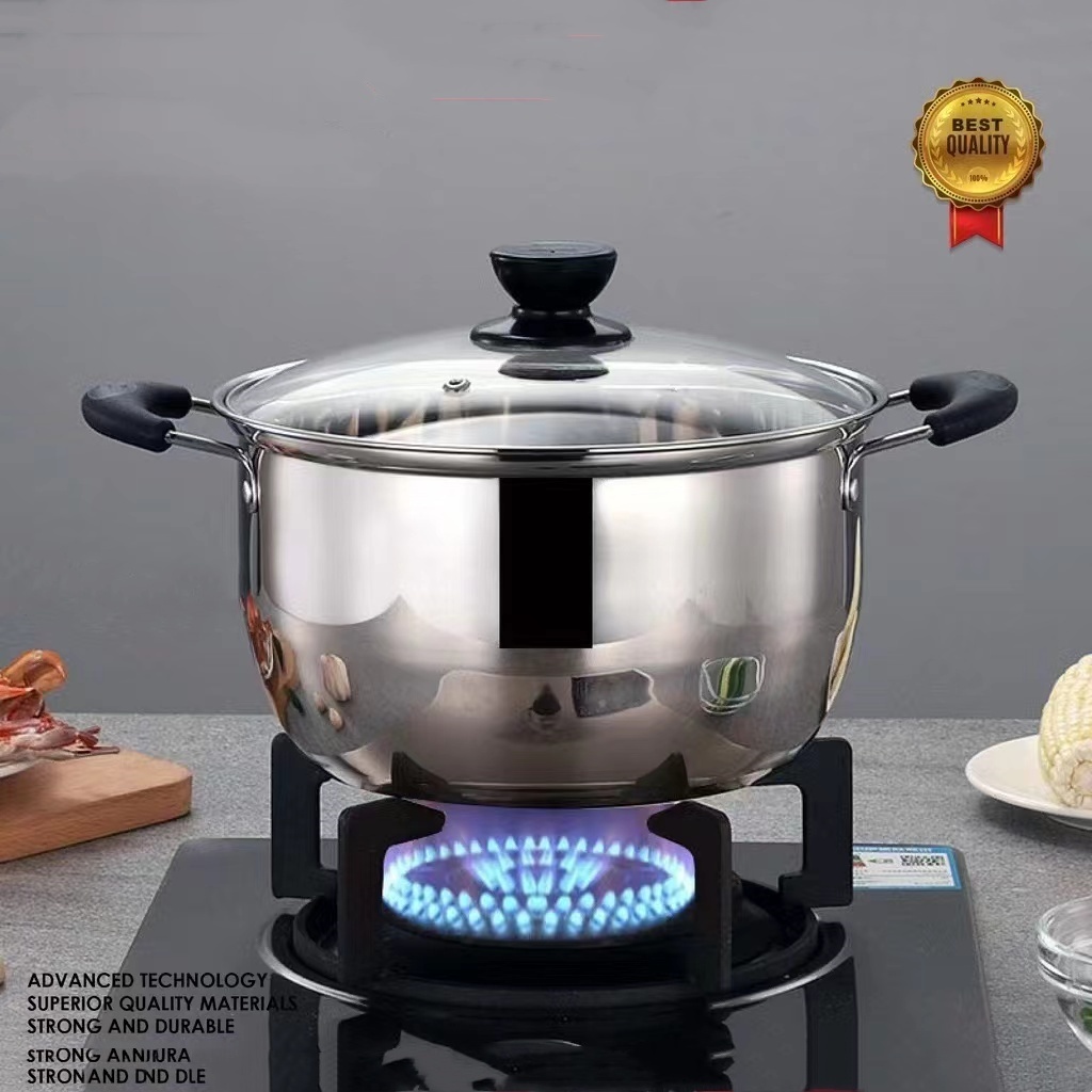 Panci Masak Soup Stainless Steel Tutup Kaca/Saucepot