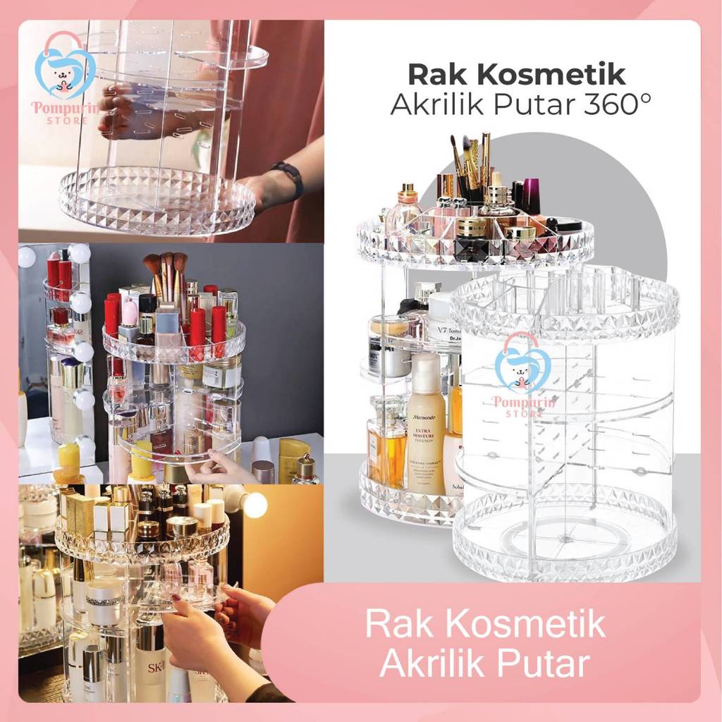 Rak Kosmetik Akrilik Putar 360° - Rak Kosmetik Skincare Makeup Organizer Susun Serbaguna Rak Kosmetik Putar