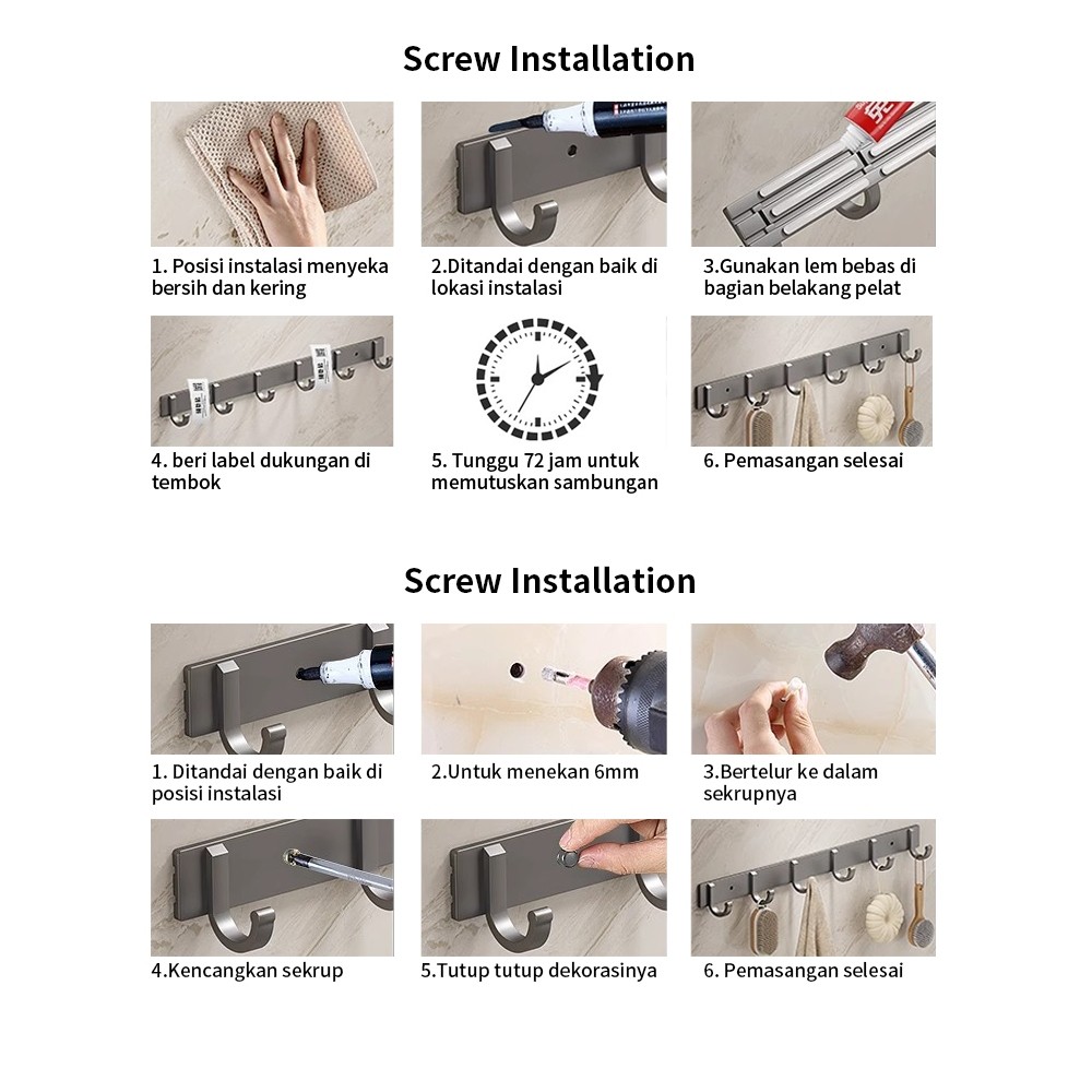 Hook 4 5 6 Gantungan Aksen Kayu Kamar Mandi Toilet Kamar Tidur Anak Ruang Tamu