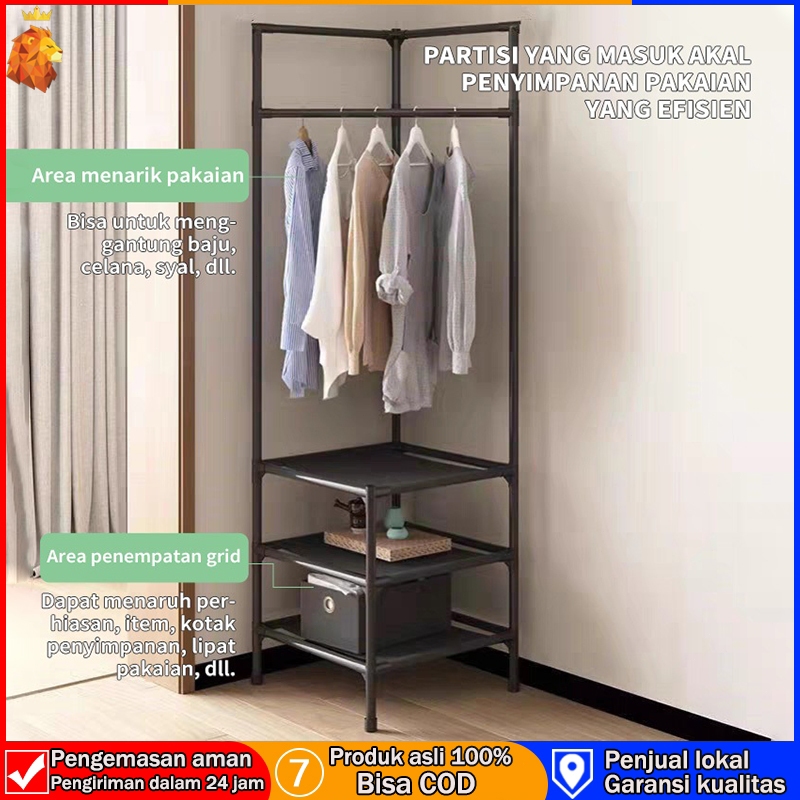 Rak Baju Sudut Multifungsi Portable Berdiri Sampayan Jemuran Pakaian Gantungan Serbaguna Hanger