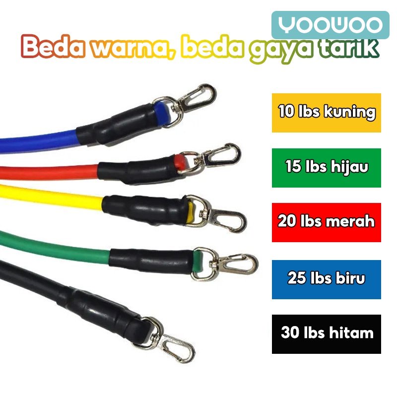 YooWoo Resistand band set 11pcs /11in1 Set tali fitness/Set tali gym/Band stretching