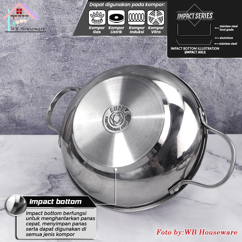 SUPRA wok 26cm + tutup kaca viliron stainless steel impact SUS 304 professional series / panci wajan penggorengan handle