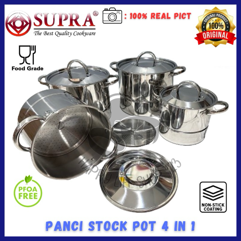 SUPRA Stock Pot 4IN1+Steamer-Non Steamer/Panci Stainless Kukusan SUPRA