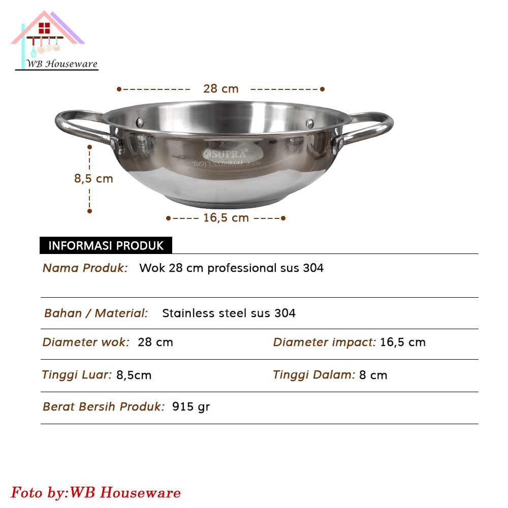 SUPRA wok 28cm + steamer + tutup kaca kombinasi stainless steel impact SUS 304 professional series / panci wajan penggor