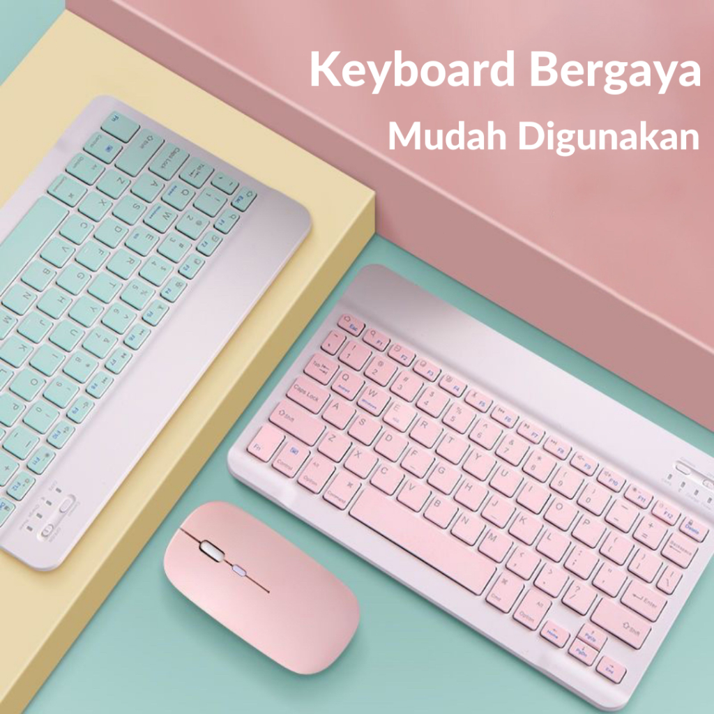 Keyboard Dan Mouse Bluetooth Nirkabel Combo USB Office Silent IPad Laptop Untuk IOS Android Windows