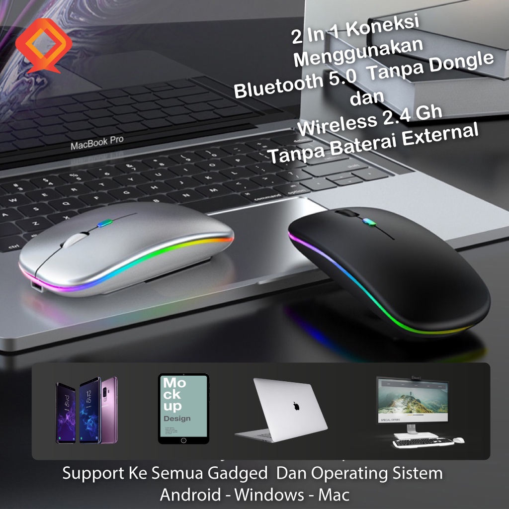 Mouse Bluetooth 5.2 Bisa Mac Windows Android Tanpa Baterai External Bisa di Charge Tanpa Dongle koneksi Bluetooth Tanpa