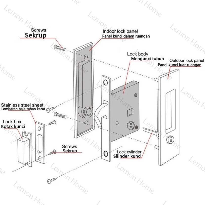 Lemon Home ⭐Garansi 1 Tahun⭐ Kunci Pintu Sliding Geser Set Handle Set Hitam / Perak abby Invisible Sliding Door Lock Latch Handle Pintu Geser Estetik Kuat LH