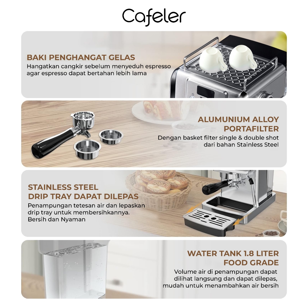 Cafeler Mesin Kopi Espresso 20 Bar Coffee Maker Stainless Steel Fast Heating Sistem