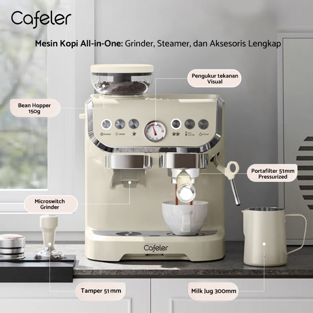 Cafeler Coffee Maker Espresso Mesin Single Heater Sistem Mesin Kopi Espresso Grinder 51MM