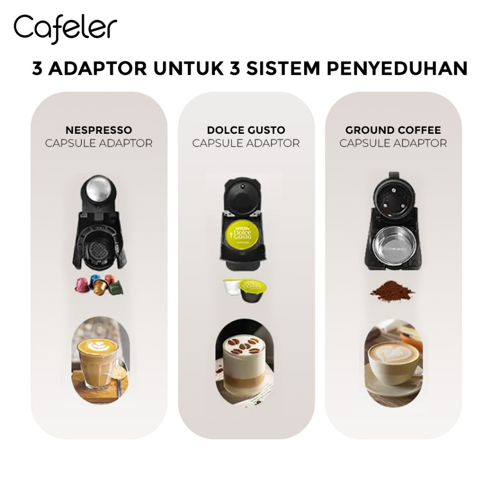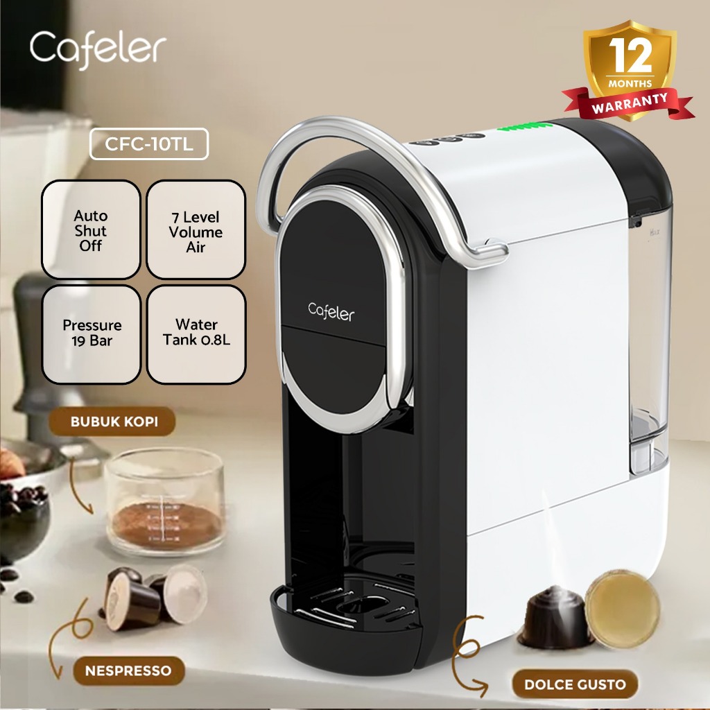 Cafeler Mesin Kopi Multi Kapsul 3IN1 Ekstraksi Hangat 7 Level Water Volume Capsule Coffe Maker 19Bar