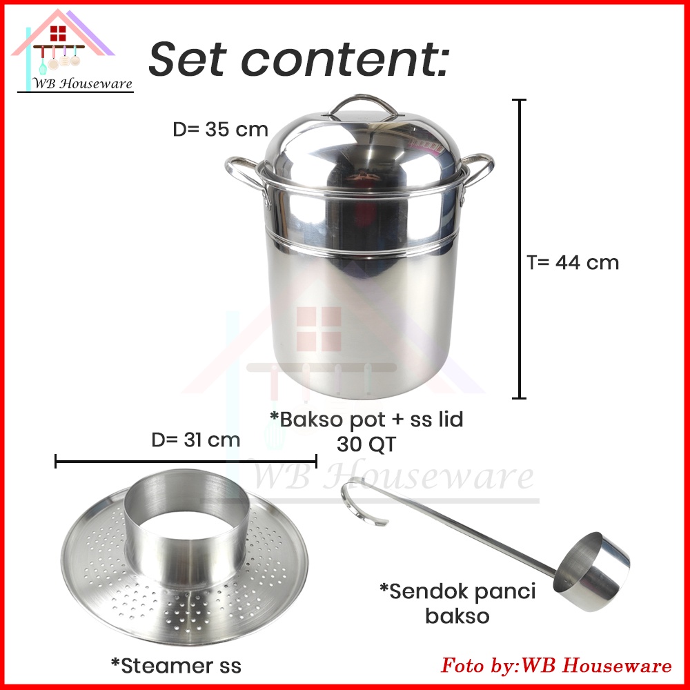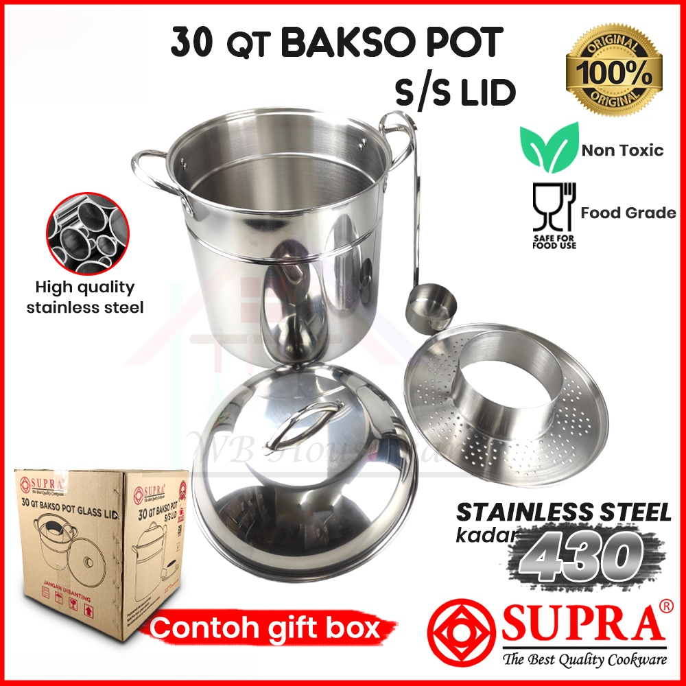 Supra Panci tong bakso pot 28,5lt + tutup stainless / stock pot stainless 30qt / wadah masak besar rebus