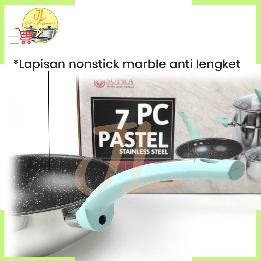 Panci set 7pcs cookware set stainless impact pastel Turquoise SUPRA / Wajan set induksi
