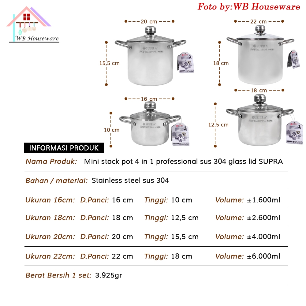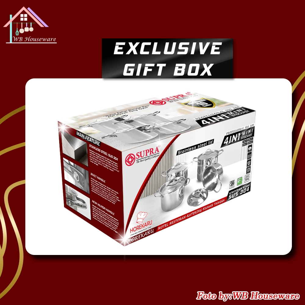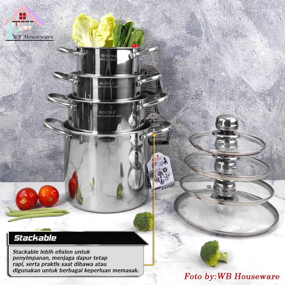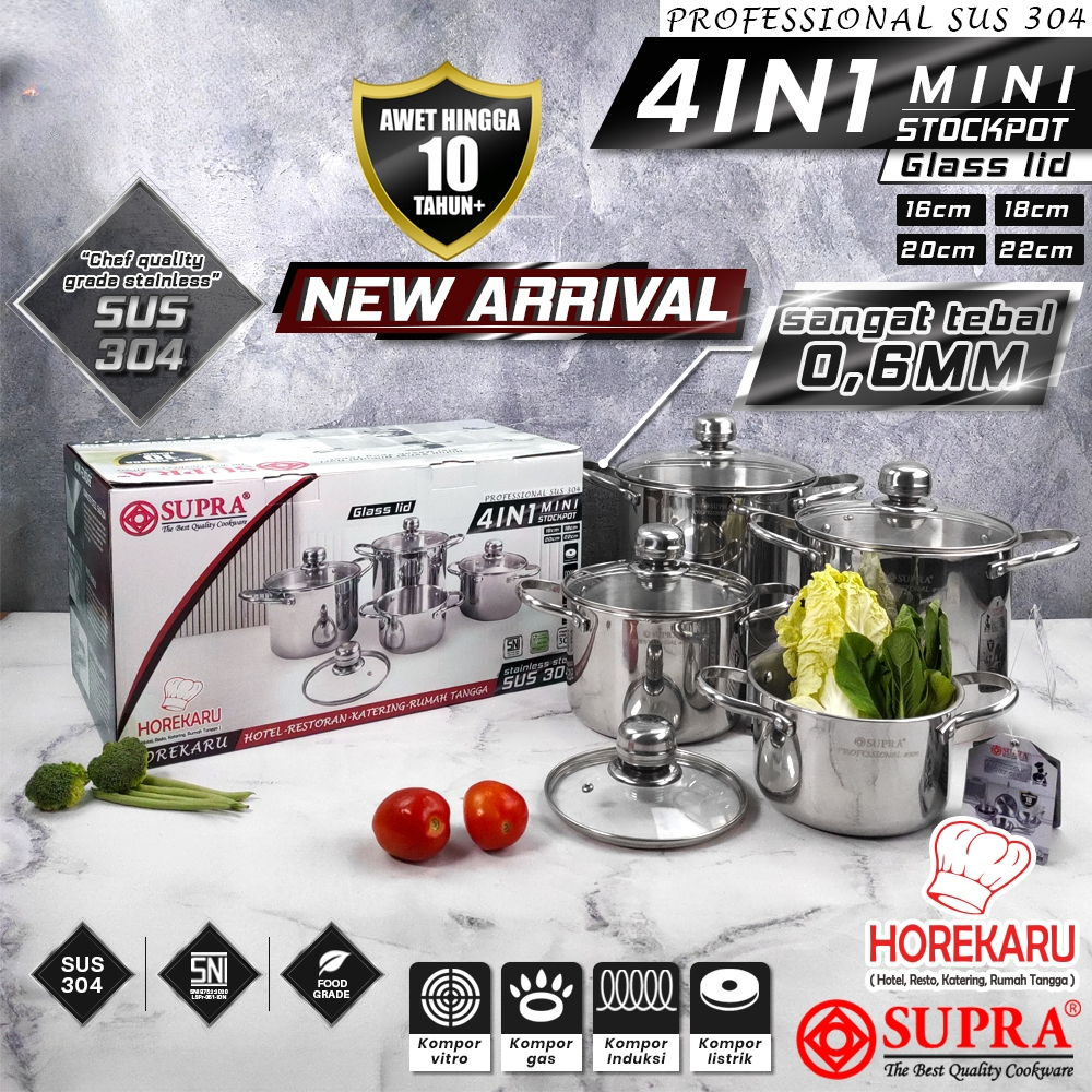 Supra New 2025 Panci Set Mini Stock Pot 4 In 1 Stainless Steel SUS304 Professional Series / Soup Pot Masak Rebus Mie / D