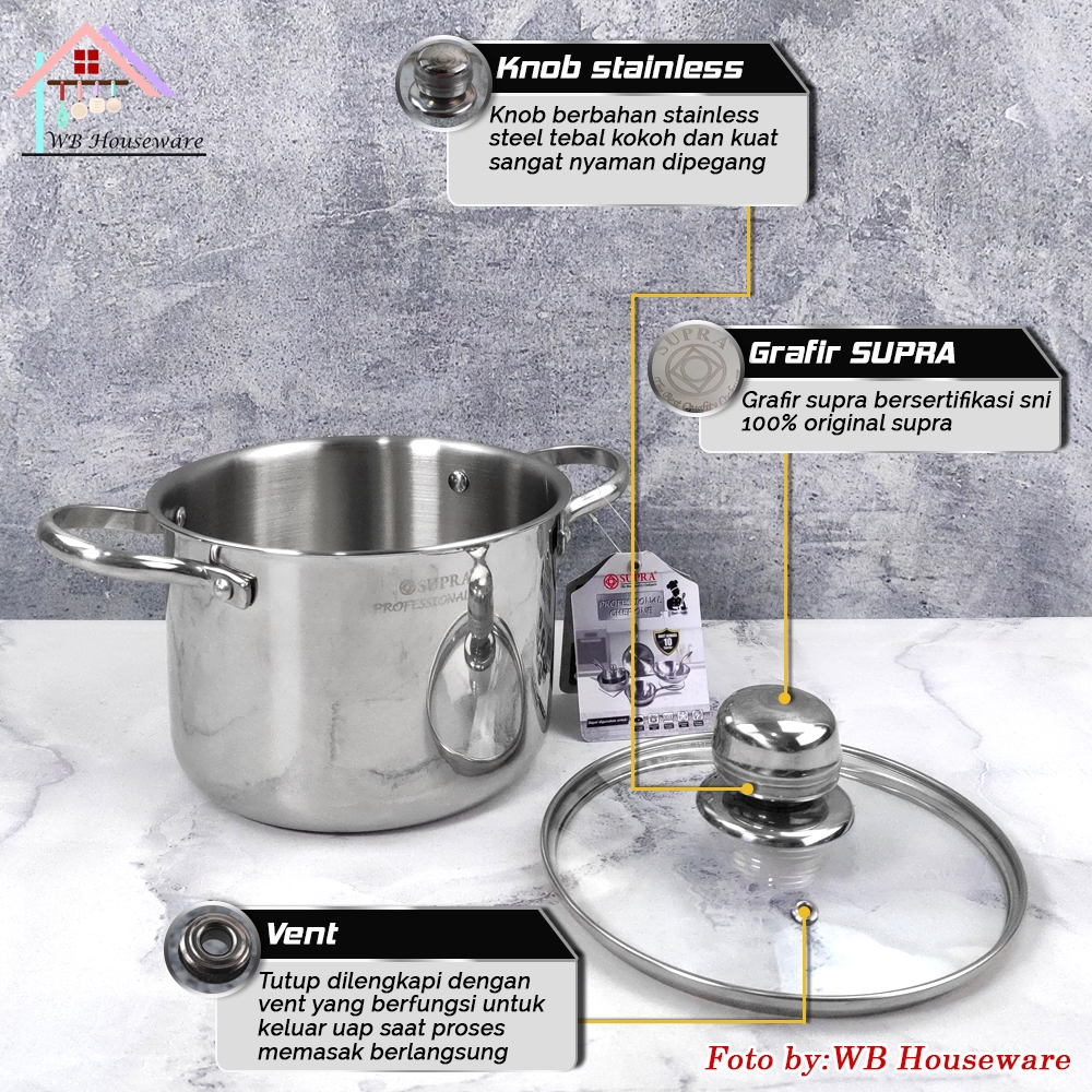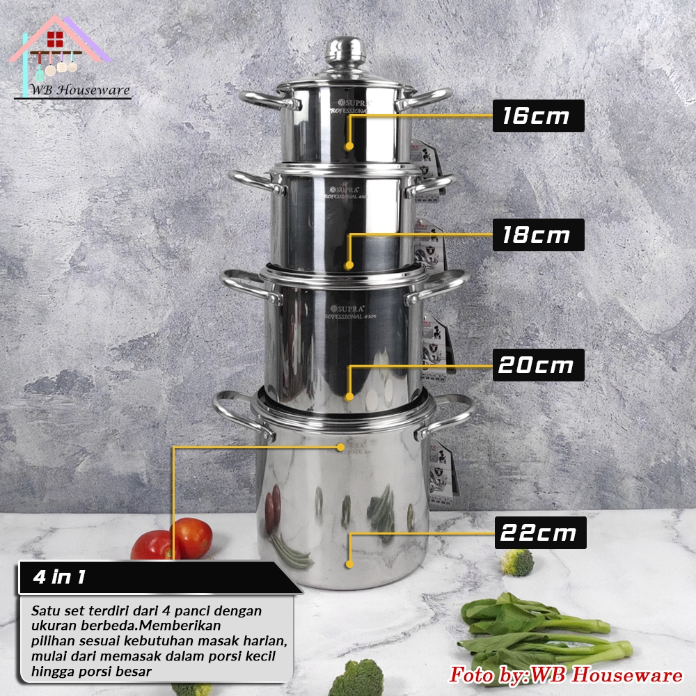 Supra New 2025 Panci Set Mini Stock Pot 4 In 1 Stainless Steel SUS304 Professional Series / Soup Pot Masak Rebus Mie / D