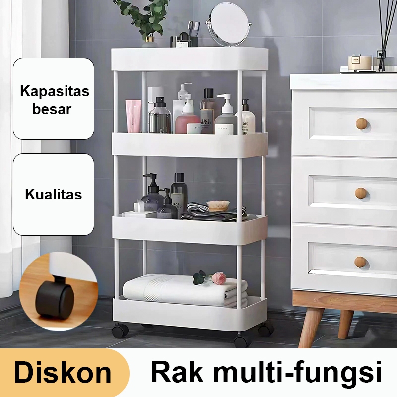 Rak Susun Serbaguna 4 Tingkat Bahan Plastik Dengan Roda Rak Kamar Mandi Bahan Plastik Portable Rak Dapur Square