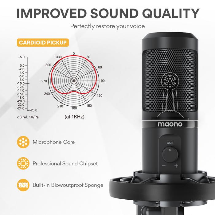 MAONO 461 USB MICROPHONE KIT MIC CONDENSER RECORDING STREAMING PODCAST