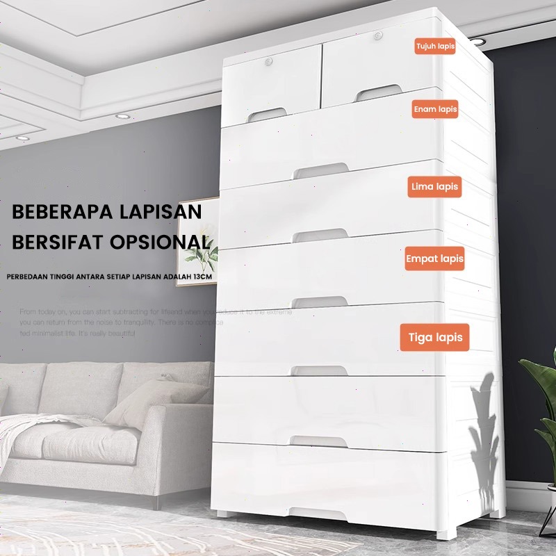 Pocket Dragon Lemari pakaian plastik tertutup susun | Lemari plastik putih polos multifungsi | Lemari pakaian plastik premium Lemari Pakaia