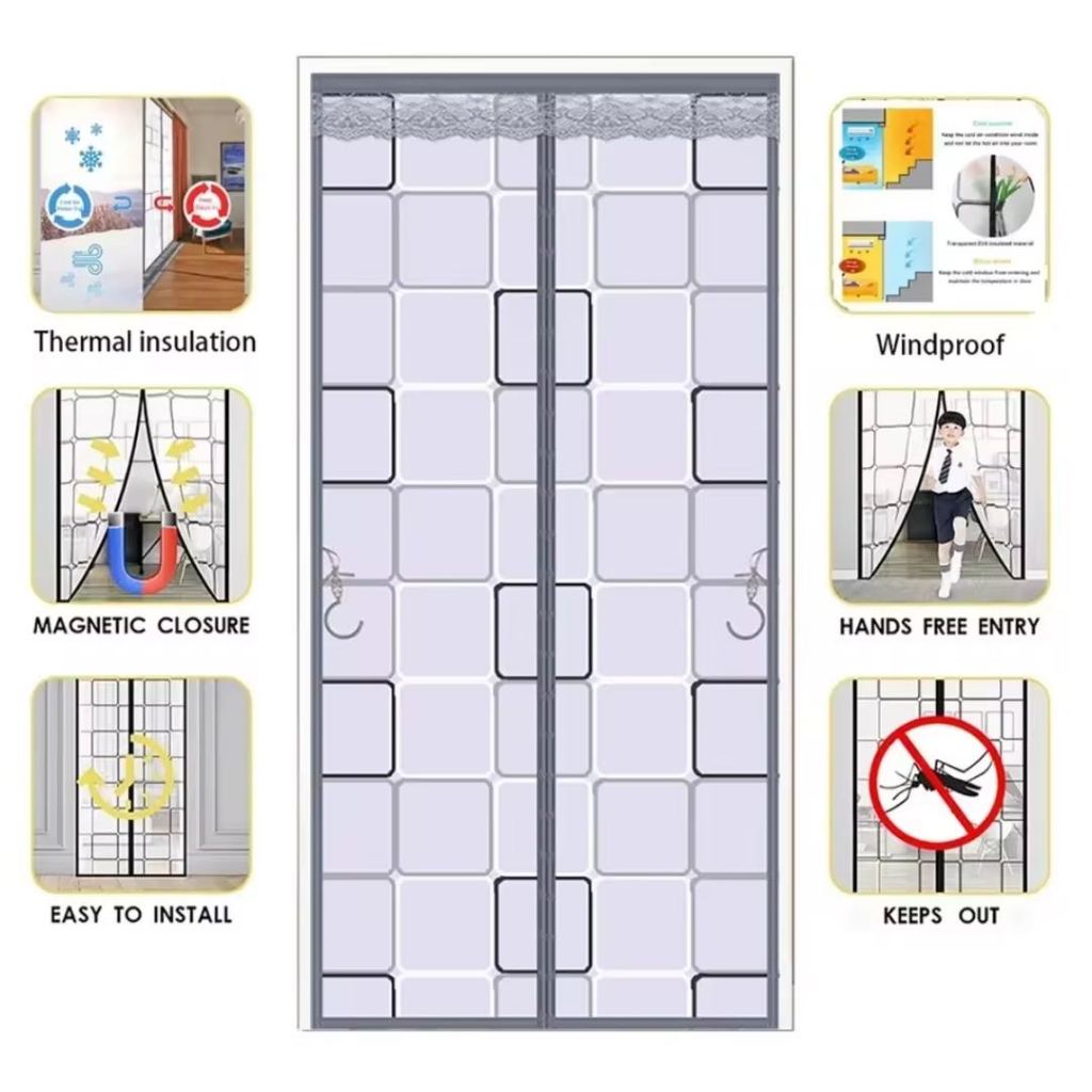 Reaim Tirai Magnet Anti Nyamuk Material PVC Tebal Ukuran 100x210cm Kedap Udara Senyap Tirai Pintu Anti Nyamuk Ukuran Besar