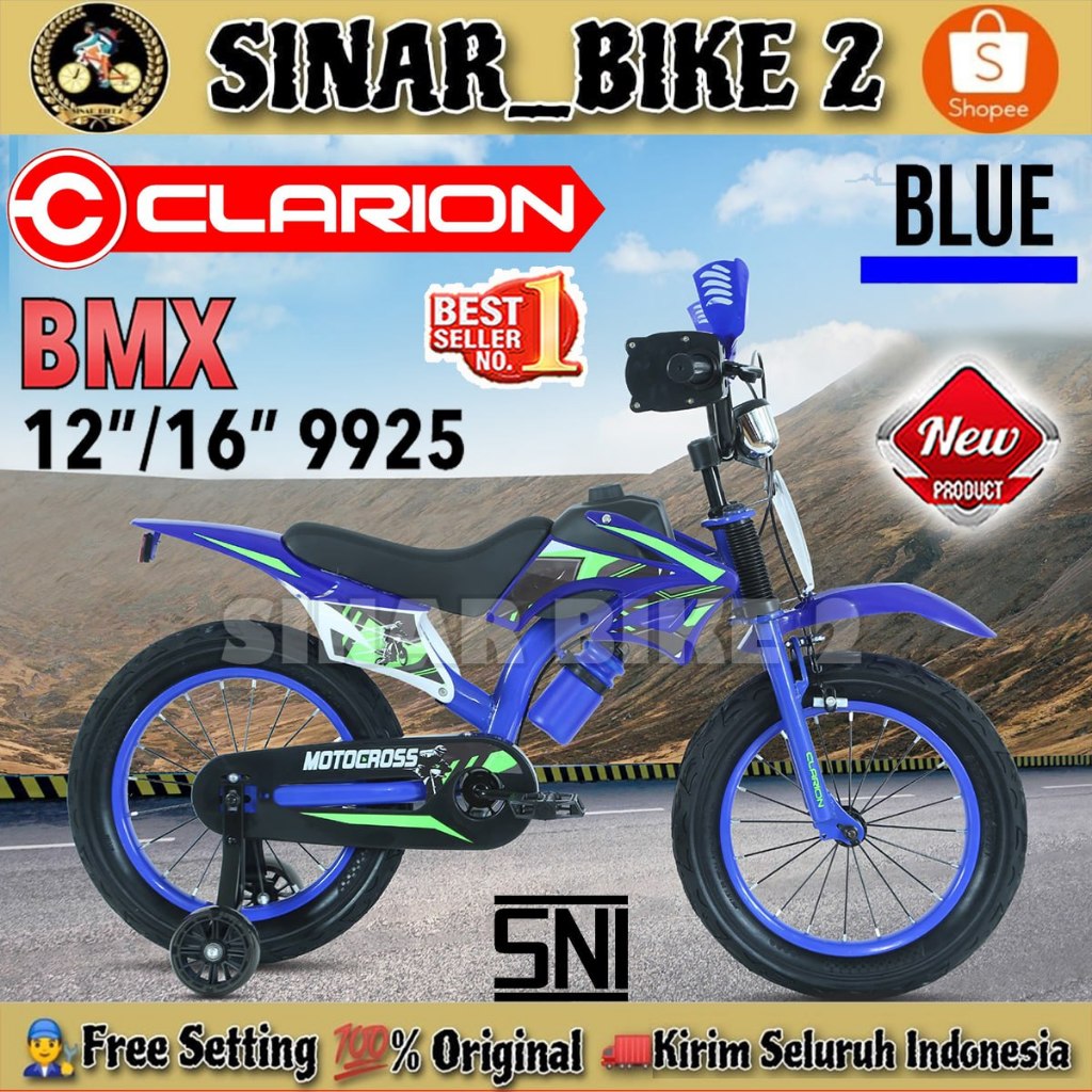 Sepeda Anak Laki BMX CLARION CL 9925 // CL 9927 ADA SUSPENSI // BMX TRAIL NP 2213 ADA PER TENGAH Ukuran 12 dan 16 Inch Model Motor Cross Trail