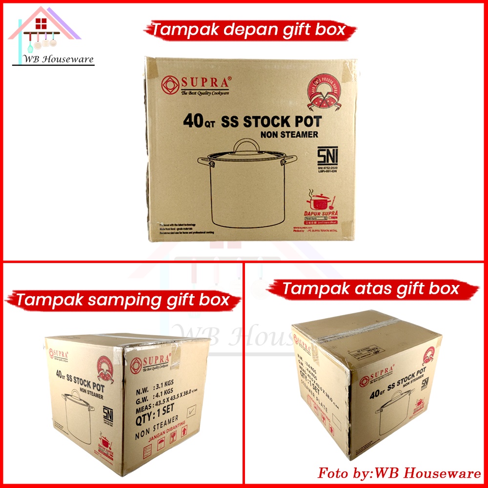 SUPRA stockpot 40qt 38Liter / panci tinggi jumbo stainless + tutup / panci rebus sayur / steamer pot