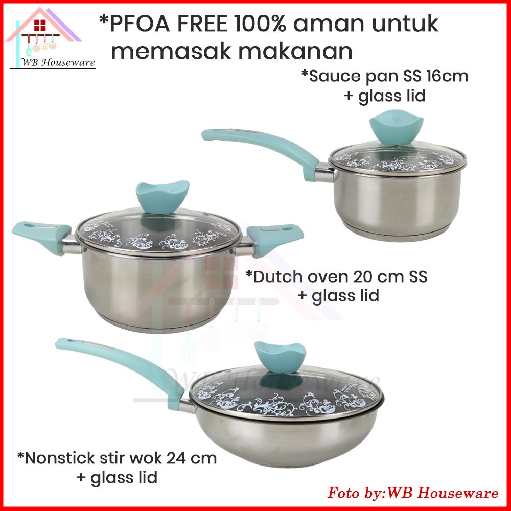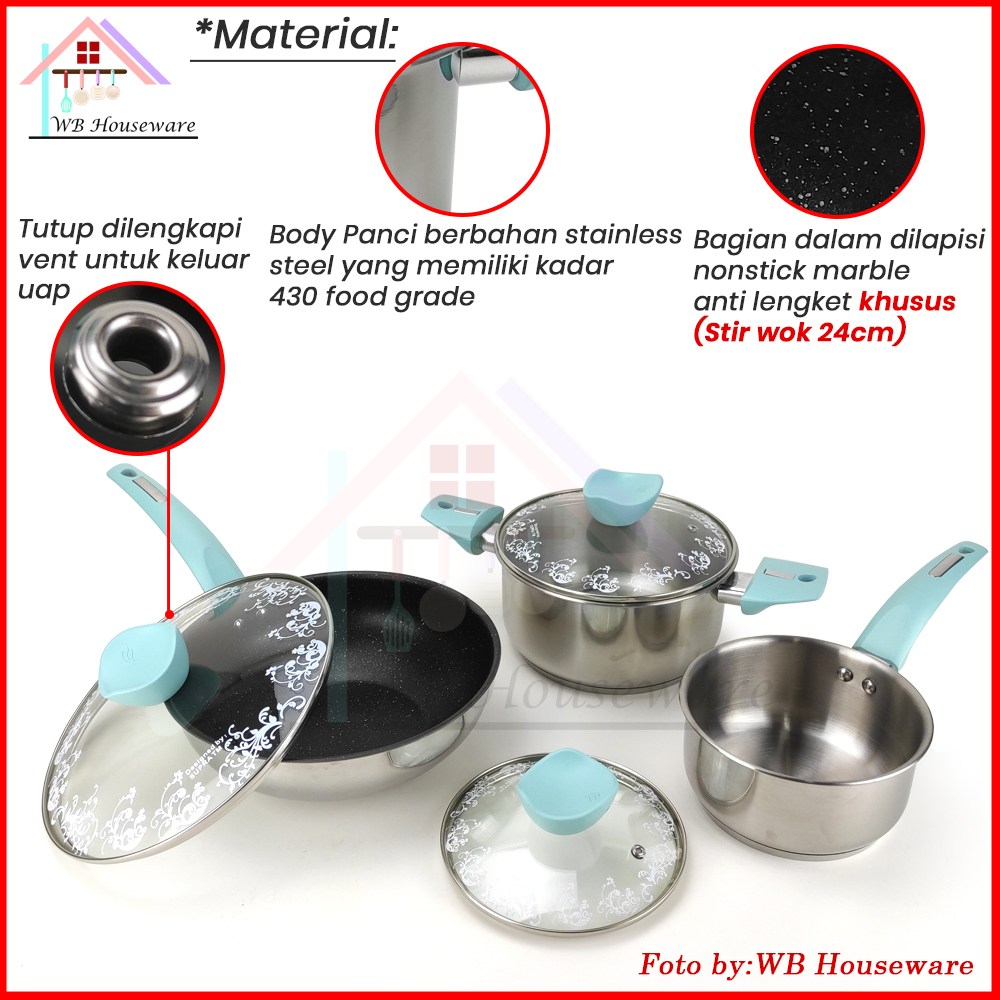 panci set panci set anti lengket 6pcs cookware set stainless impact pastel turquoise SUPRA
