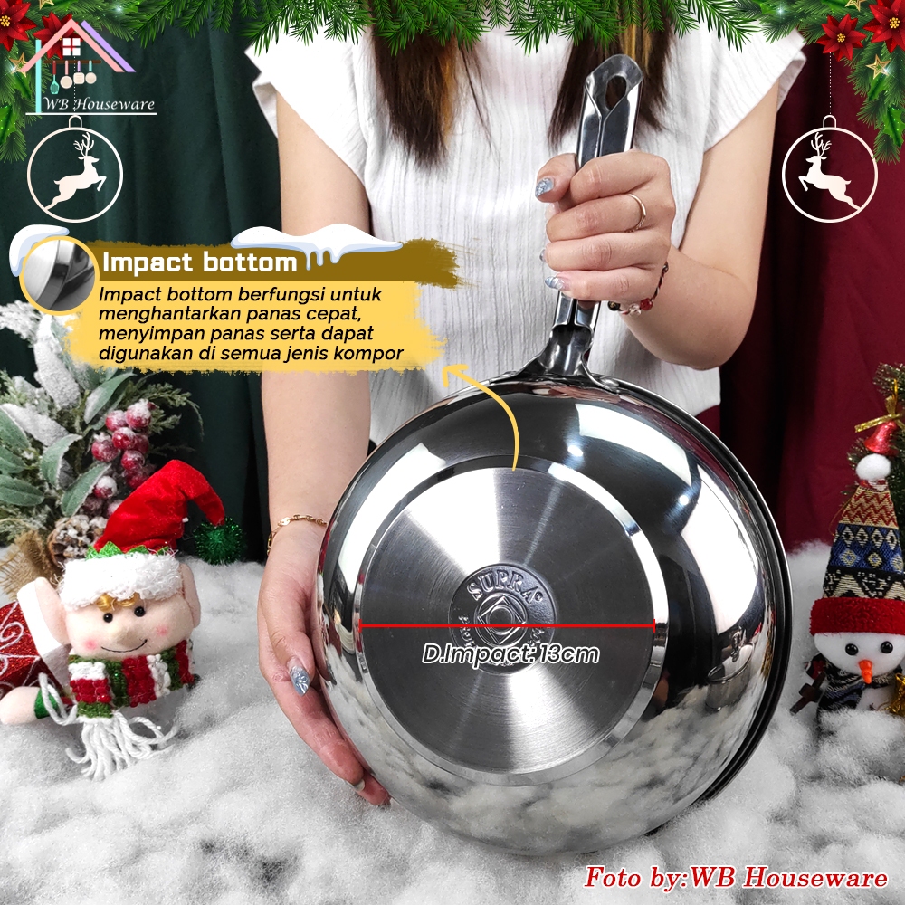 SUPRA Panci stir wok set 24cm + steamer + tutup kaca viliron stainless steel SUS 304 professional chef series / penggore