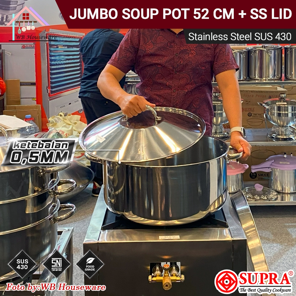 SUPRA Panci soup pot jumbo 52cm + tutup stainless steel SUS430 / wadah masak catering - hotel - restoran - rumahan